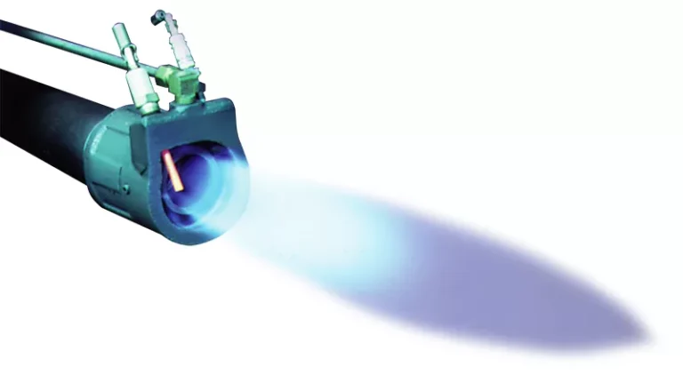,适用于直燃式空气加热场景,同时可直接向炉体、风管或浸没管进行敞口燃烧作业。其产生的单股火炬状火焰能够形成文丘里效应,将二次空气抽吸至燃气喷嘴周围,进而实现铸金属喷嘴的低温运行,延长设备使用寿命。
